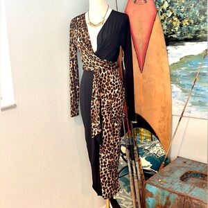 Goodtime USA,Stunning Body-Con Dress,Long Attached Wrap-Around Belt, Size Large