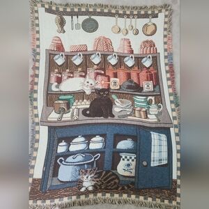 Goodwin Weavers Vintage Cats All Over My Kitchen Blanket 65" X 47" 100% Cotton