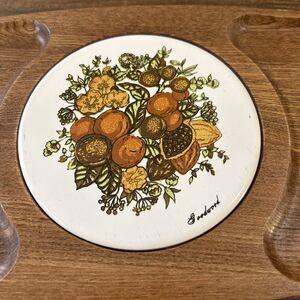 The tray is made of high-quality wood and finished with a beautiful wood finish. The colors are vibrant and multicolored, making it an eye-catching piece for any kitchen or dining room.