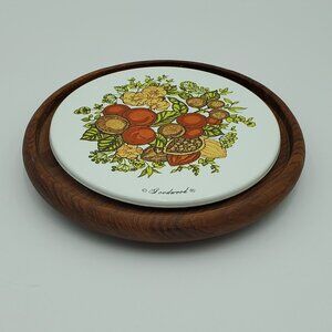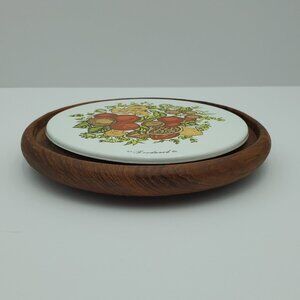 Goodwood Spice of LIfe Trivet, Cheese/Charcuterie Plate. Teak base. 7.25" round. Very good vintage condition with a few marks on the bottom rim of the plate.