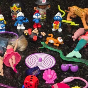 Rings & Bracelets, Dolls, Minions, Rubber Snakes, Smurfs, Spinner toys,