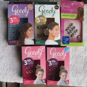 This listing is for Goody Simple Styles Spin Pins. Takes the place of several bobby pins! Save time and have a neater style. Spins right back out the way it when in. So efficient! I love these. They work great for mini buns. Your choice of colors, sizes, and quantity. Blonde, Brunette, Pink, and Blue. The mini spins come 3 to a package and are shorter than the spin pins. The ones with bows are 2 mini spin pins to a package, and only one has a bow in each package. You may be able to remove the bow if desired. Packaging is from 2009-2017. As always, packaging may show shelf wear. Some look more rough than others! The items should be undamaged. These boxes protect them pretty well. Please use the pictures for the best description & ask any questions you may have. Please see the ruler in the pictures for the best description of the sizes. All variations are for ONE package. If you need a quantity of packages, let me know so I can create a new listing for you. Smoke free home. Tac, the cat that I belong to, inspects everything she can get to for its salable worthiness. Be sure to check out all of my Goody & other hair care products to find the right ones for you. Consider Bundling for the best value! Shipping is the same flat price for all items you want in a package, up to 5lbs.