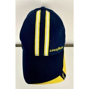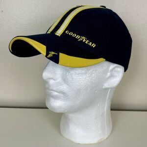Goodyear Racing Hat Cap Navy Blue Yellow Stripes Snapback Adjustable