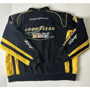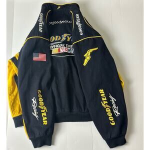 This is a Goodyear Racing NASCAR Jacket XL Blue Yellow Embroidered button-Up Crew