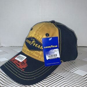 Goodyear Tire Colorblock Logo Baseball Hat Cap Blue Yellow Snapback NWT