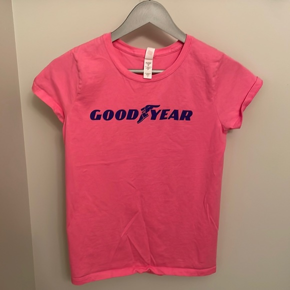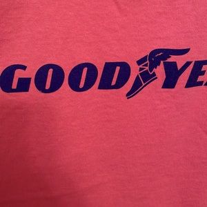 Worn 1x- not my color and no longer fits but my Dad had given it to me so I had worn it around him. Printed Goodyear logo on Hanes tee.