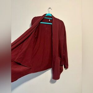 Goofandy women's maroon long sleeve open front long cardigan sweater L small water steam spot
