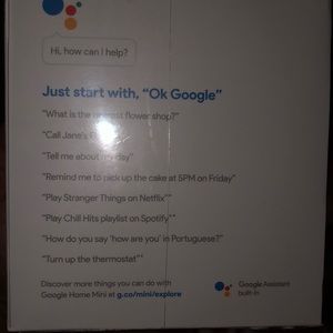 Brand new, small but mighty never been used before Google Home Mini! This small device offers hands free calls, voice control your home and plenty more! Make an offer today & receive it by next week. Fast shipping ‼️