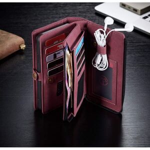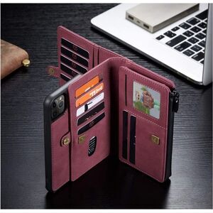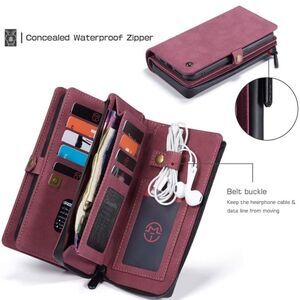 Multi-Functional PU Leather Purse Flip Zip Wristlets Clutch Detachable Magnetic Card 17-Slots Cash Purse Protection Cover(Pixel 4A 5G Red)
