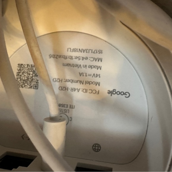 Google wireless router with sleek design. Features multiple ports for connectivity. Compact and efficient.