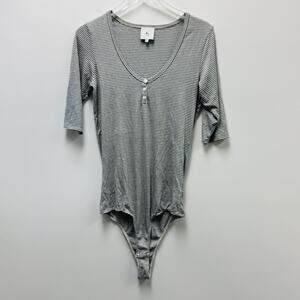 Goop G. Label Annika Mid Sleeve Stripe Henley Bodysuit Size L
