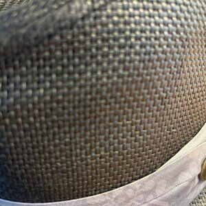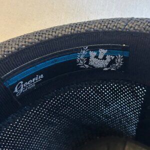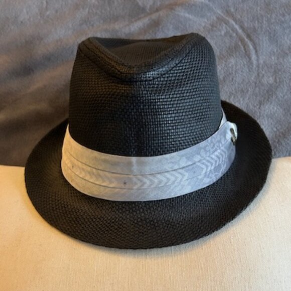 Goorin Braided Straw Fedora Hat. Black with gray banding. Dimensions as shown in the photos.