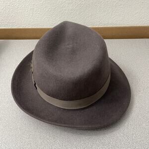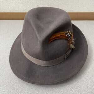 Goorin Bros Fedora Hat Medium Wool Feather Ribbon Band Pinched Teardrop USA