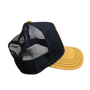The Goorin Bros Funky Monkey Banana Shake Black and Yellow Trucker Cap Hat is a versatile and stylish accessory for men. This hat features a black and yellow color scheme with a solid pattern and a fun animal theme. Made from a blend of polyester and cotton, it is perfect for casual or travel occasions year-round. The mesh back and adjustable features add functionality and comfort to this adjustable one-size cap from the reputable brand Goorin Bros.