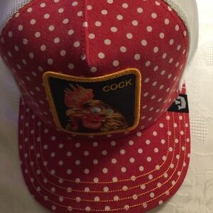 Goorin Bros.- Red and White Polka Dot Hat -Chicken Image Front of the Hat- New