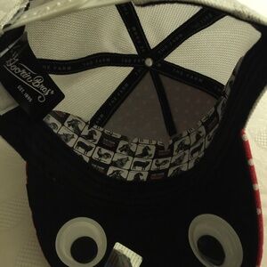 Red and white polka Dot button on top of Hat, - One size fit all, Women also wear this hat, Two eyes on the Brim of the inside of the hat,