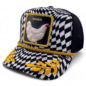Goorin Bros Winner Winner Chicken Dinner WWCD The Farm Checkered Flag A-Frame Mesh Back Trucker Snapback Adjustable Hat Cap