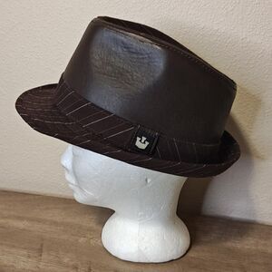 Goorin Brothers Hat Fedora Fitted Mens One Size Brown Leather Trilby Pinstripe