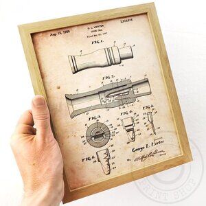 Goose call hunting patent art print reproduction, 100% American and professionally made by me with high quality materials in my U.S.A. workshop. Brand new (shown without packaging for display purposes). Glass pane, no plastic. The perfect home or business decor addition! When you buy from me, you're supporting a small business :)