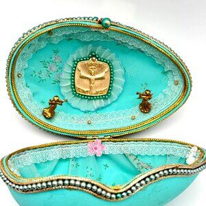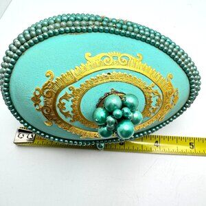 Goose Egg Vintage Jewelry Keepsake Trinket Gift Box Teal Pearls Easter Christ