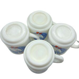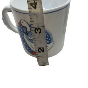 Goose Print Coffee Mug Vintage Arcopal France White Blue Ribbon Set Of Four