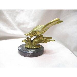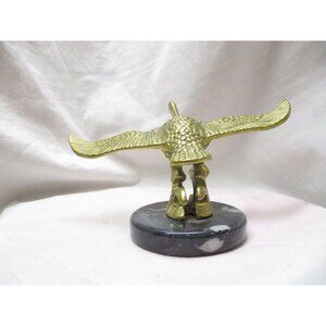 This is a brass statue of a goose taking flight. It is 4" H x 7.5" W x 5" D and has not been polished. V It is a vintagebrass and marble pedestal goose swan in flight.