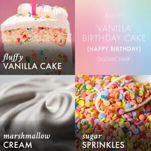 A freshly-baked cake just for your birthday! A delicious vanilla birthday cake is made sweeter by marshmallow frosting and rainbow sprinkles.