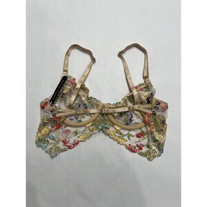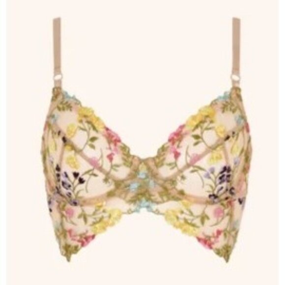 Description from retailer: Inspired by wildflowers' beauty and carefree nature, this bra features delicate floral embroidery on a soft mesh. The butterfly effect created by the longline is guaranteed to add a touch of whimsy and romance to your underwear drawer!