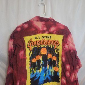 Goosebumps Horror Halloween Upcycle Corduroy Bleached Shirt Size XL Red