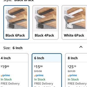6 pack in black. 6 inches long shelf brackets. Upgrade your space with these modern black wall shelf brackets, perfect for a sleek and stylish look.