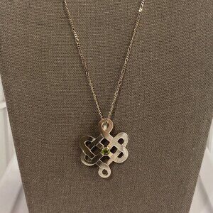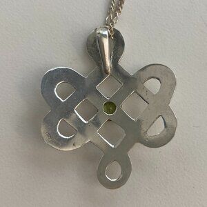 Gordian Peridot and Sterling Silver Pendant and Necklace 13" Total