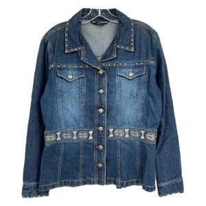 Gordon James Blue Embroidered Button-Up Denim Jacket | Size L