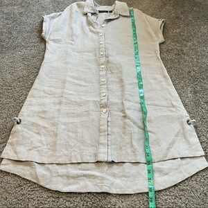 Gordon Smith linen button front tie back tunic top size 12 gray lagenlook