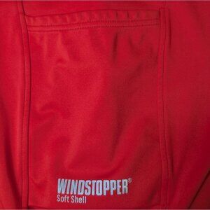 Lightweight jacket made from Windstopper fabric, providing breathability and windproof performance for cycling enthusiasts. Features a sleek red and black design.