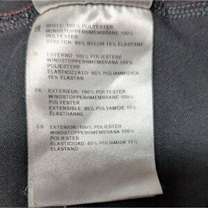 100% Polyester Shell, 85% Nylon 15% Elastane Windstopper Membrane