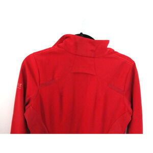 Gore Running women's windstopper soft shell jacket in red with black details. Pockets at the sides, and one on back. Long sleeves and zipper up front. No tag indicating size but would be best for a medium based on measurements: 18" underarm to underarm, 27" sleeve 25" length.