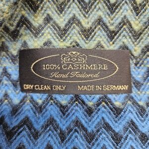 Gorgeous ombre chevron knit rectangle scarf. Fringe detail. Unisex style. Material is 100% cashmere. Made in Germany. Measures about 12" x 64" (not including fringe). Excellent condition and smoke-free home.