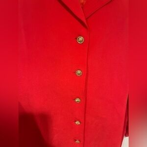Gorgeous 100% Silk Red YL by Yair Button Down Dress size 10. This is a softer red, not a deep dark red. 20” pit to pit and 40” shoulder to hem. 80s 90s vintage mob wife