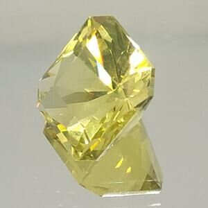 This beauty is a 12.24 carat, heated, lemony yellow stone measuring 15.2 x 13.5 x 10.0 mm. It is VVS (eye clean) clarity and cut in a fancy Octagonal shape. It would set as a huge ring or a very large pendant! This is a beauty!