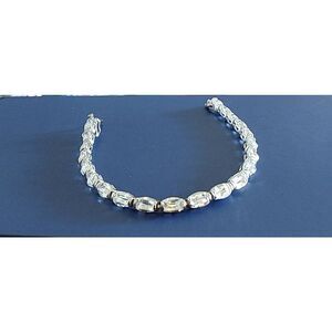Gorgeous 21 Ct. Oval Mirror Checkerboard Cut Lab White Sapphire Link Bracelet