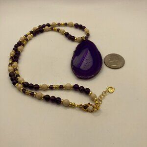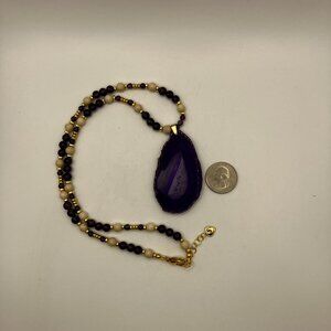 Agate Amethyst Gemstone Raw Edge 22 in Beaded necklace 2.5 inch Agate Stone NEW