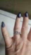 The engagement ring features a center one carat round cut AAA quality simulated diamond gemstone and is flanked on each side by two smaller round cut stones. The wedding band features four round cut stones for a four carat total in the set. The bands and settings are done in a heavy 18k white gold plate and layered in rhodium for a lifetime of durability and shine. It is size 8.