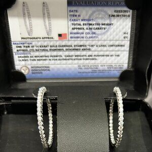 Gorgeous 4ct 14k White Gold Diamond Hoop Earrings (Inside Out & Trellis Style)
