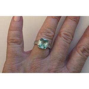 Gorgeous 5.08 Ct. Seafoam Green Spinel & Sim Diamond Engagement Ring Sz 8~.925SS