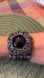 Gorgeous 6 strand black beaded bracelet w/ large silver & black medallion EUC