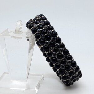 Gorgeous 6mm Black Glass pearl Multi-Strand with ab Stretch fashion Bracelets