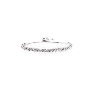 This bracelet is stunning and everyone will think you had to take out a second mortgage to own it! There are 32 round cut prong set 1/4 carat quality simulated diamonds for a total of 8 carats of gem weight in the ring. It has been heavily layered in an 18K white gold plate finish for a lifetime of tarnish free wear. It has an adjustable bolo style closure and will fit up to a 9” wrist size.
