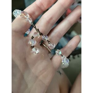 Gorgeous AB Crystal Vintage 50s Single Strand Necklace 16.5in | Materials: Faceted AB Crystal | Length: 16.5in | Clasp: hook and chain | Signed? no | Excellent vintage condition