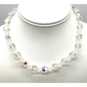 Gorgeous AB Crystal Vintage 50s Single Strand Necklace 16.5in