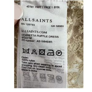 Gorgeous ALL SAINTS Party Dress Sheer Lace (Lined) Sexy Romantic $375